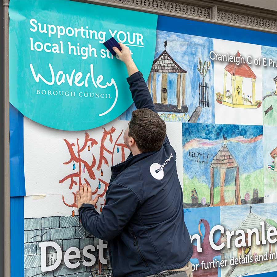 Yes. Our team can deliver and install signs, vinyl wraps, banners, and wall graphics in Godalming and the wider Surrey area. We are fully insured and experienced in working at height and in a variety of commercial and public environments.